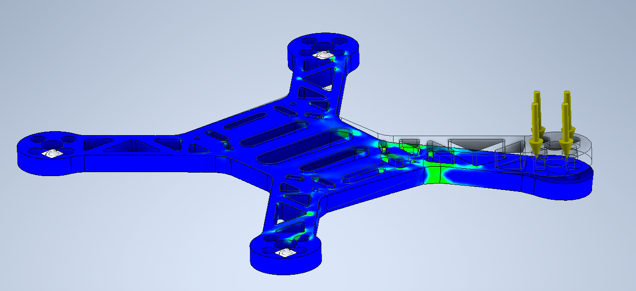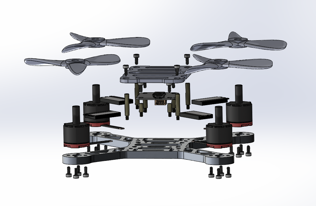 A Micro Drone I specced, designed, and 3D-printed as a personal project. I performed CAD aided FEM on it to ensure the body could take the stress from the brushless motors. The propeller models are approximations, they were good practice to help me understand certain Solidworks features better.